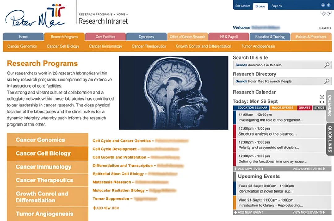 The PrintBound Group were contacted by Peter Mac Cancer Research Institute to assist in updating the user-interface for their SharePoint Intranet Portal. PrintBound tasked me with developing the concept.
